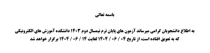 اطلاعیه برگزاری آزمون های پایان ترم نیمسال دوم 1403